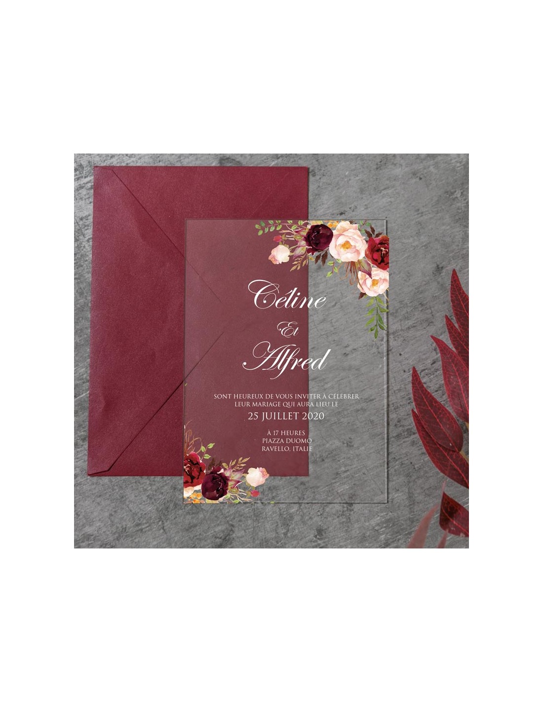 Pack :Faire-Part Mariage Acrylique Fleuri - Modèle 6
