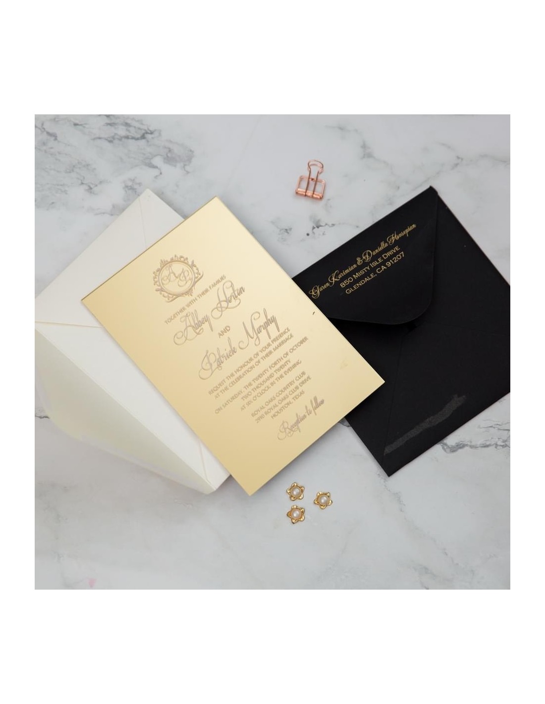 Pack :Faire-part Mariage Plexiglas Miroir Or Design Baroque - Modèle 3