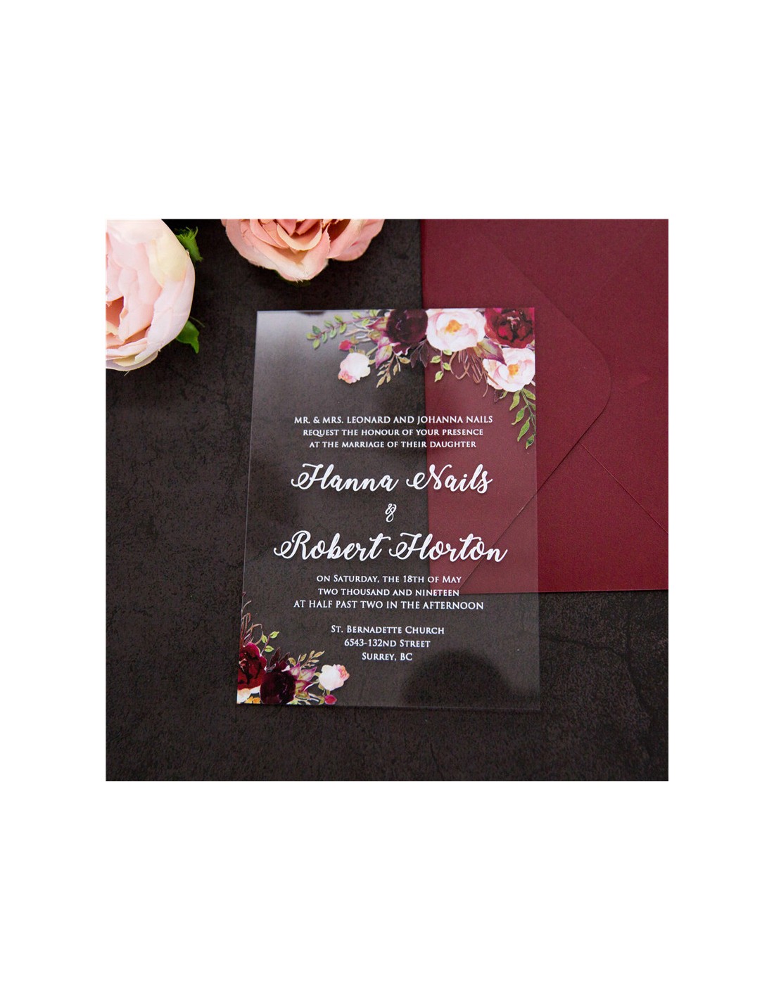 Pack :Faire-Part Mariage Acrylique Fleuri - Modèle 6