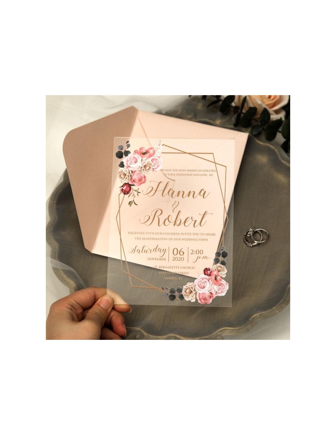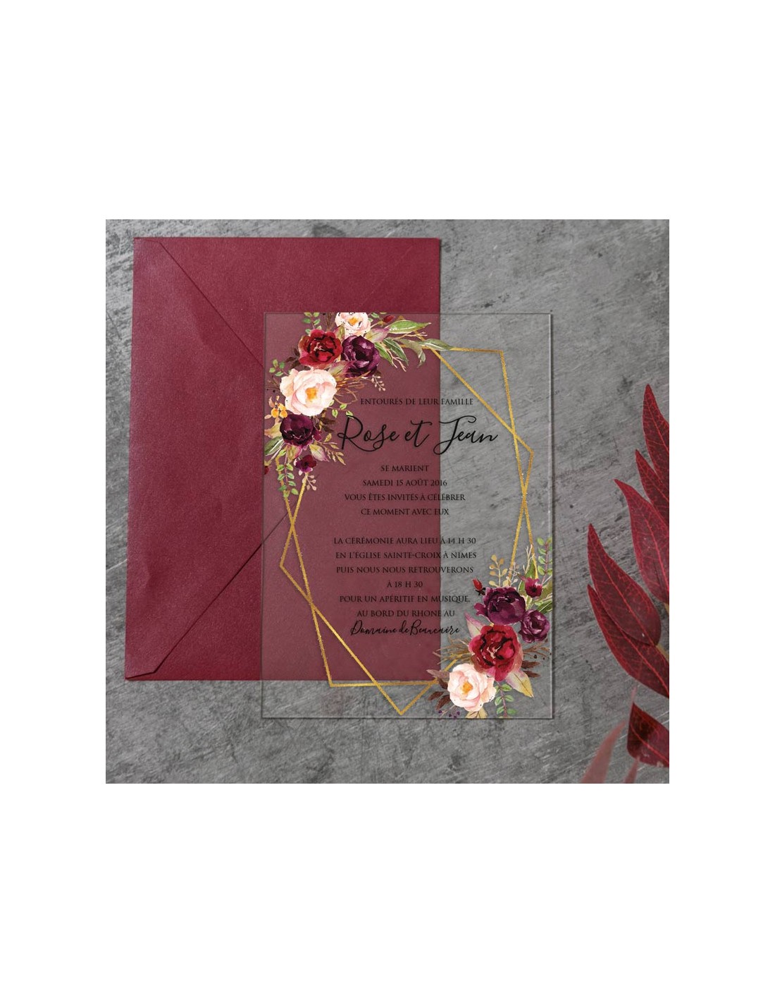 Pack :Faire-Part Mariage Plexiglas Motif géomètrique et fleur - modèle 23