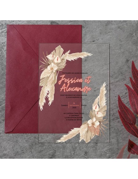 Pack :Faire-Part Mariage Plexiglas Herbe de pampa - Collection Jessica