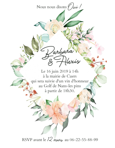 Pack :Faire-Part Mariage Plexi Floral - Collection Alexis - Modèle 39