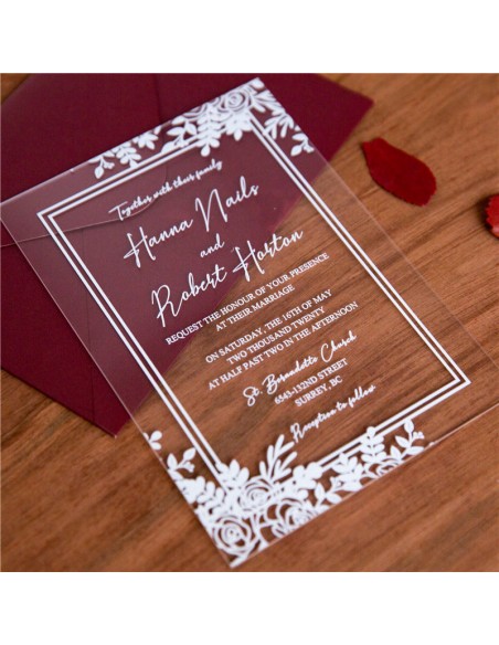 Pack :Faire-Part Mariage en plexiglas Design champêtre blanc - Modèle 4