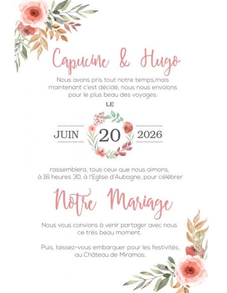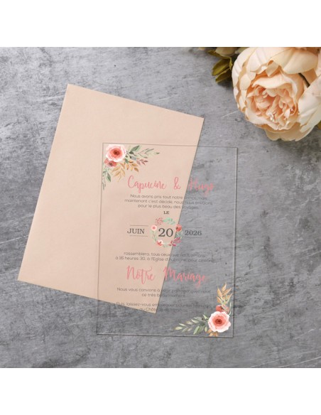 Pack :Faire-Part Mariage Plexiglas fleurs des champs - Collection Capucine