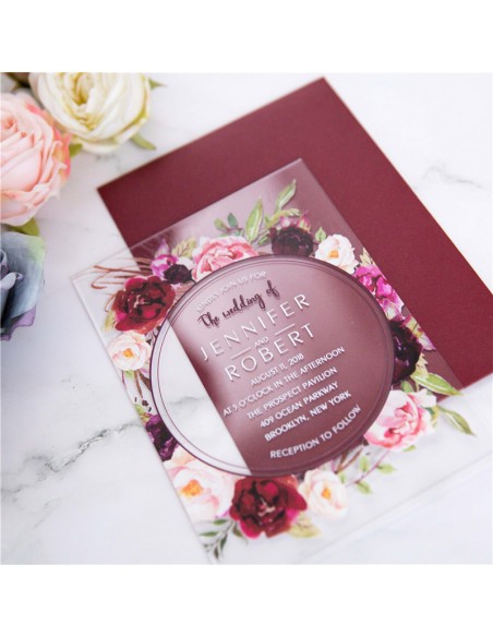 Pack :Faire-Part Mariage Plexiglas roses florales - Collection Rosie