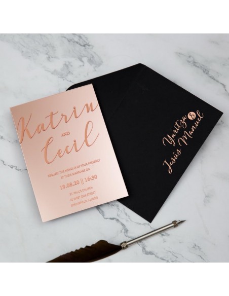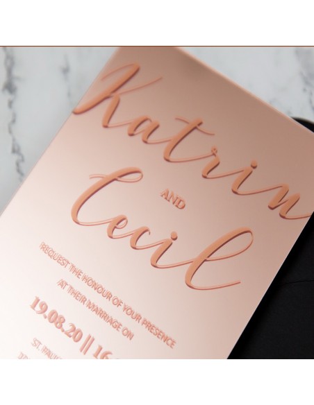 Pack Faire-part Mariage Plexiglas Miroir calligraphie moderne - Modèle 1