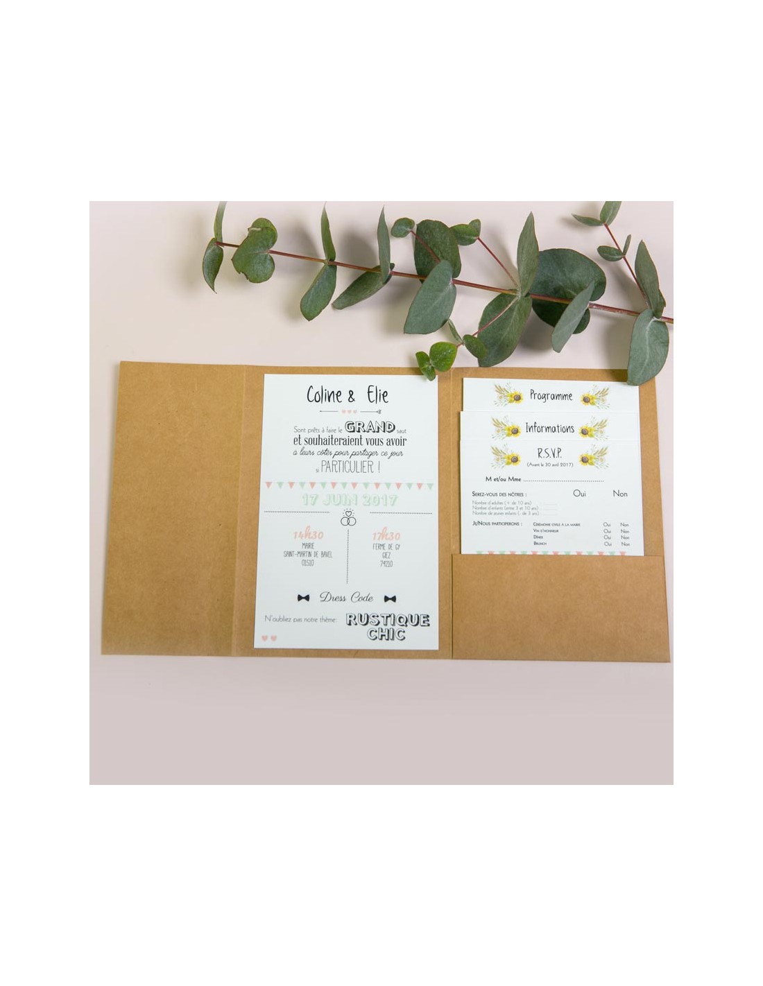 Pack Faire-part Mariage Pocketfolder 3 volets avec rabat sur-mesure - WPFB2117