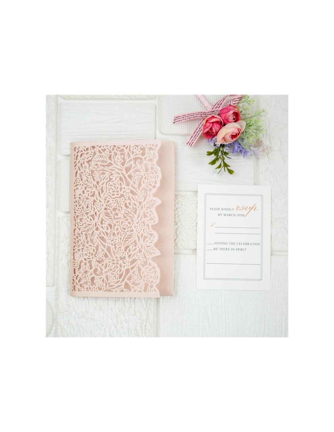 QUANTITÉ MINIMUM 30 EXEMPLAIRES : 40 x - Faire-part Mariage Pocket folder floral ciselée - WPFC2137 - Quantité - Choisissez votre quantité