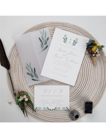 Pack Faire-part Mariage Pochette Calque Thème Végétal