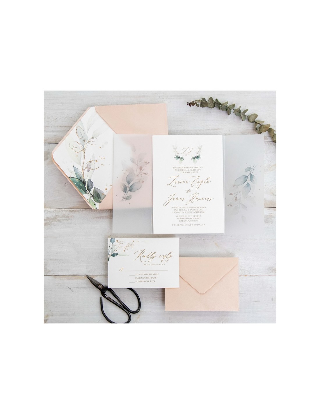 Pack Faire-part Mariage Pochette Calque Thème Nature Chic