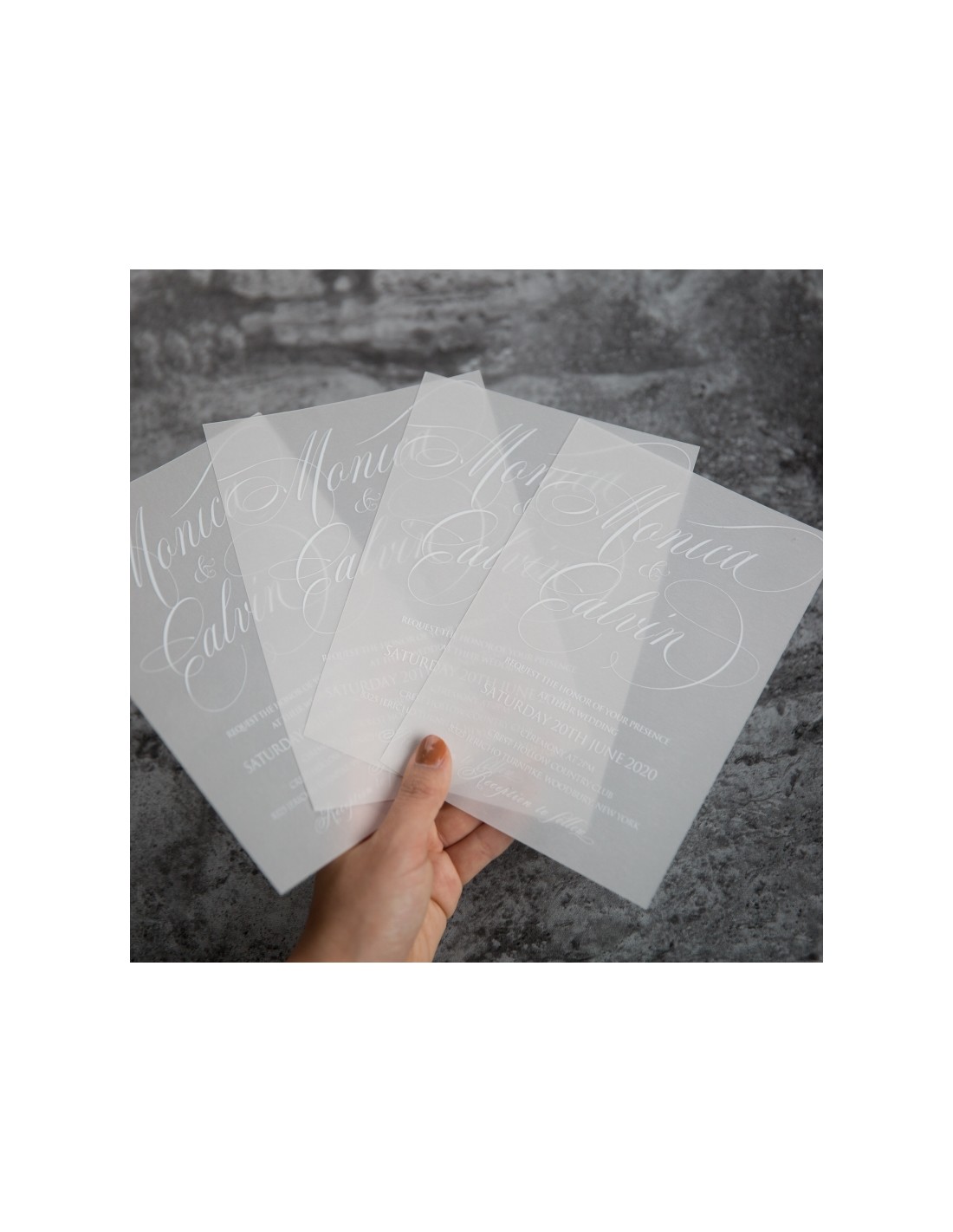 QUANTITÉ MINIMUM 30 EXEMPLAIRES : 350 x - Faire-part Mariage Calque avec Encre blanche - Quantité - Choisissez votre quantité