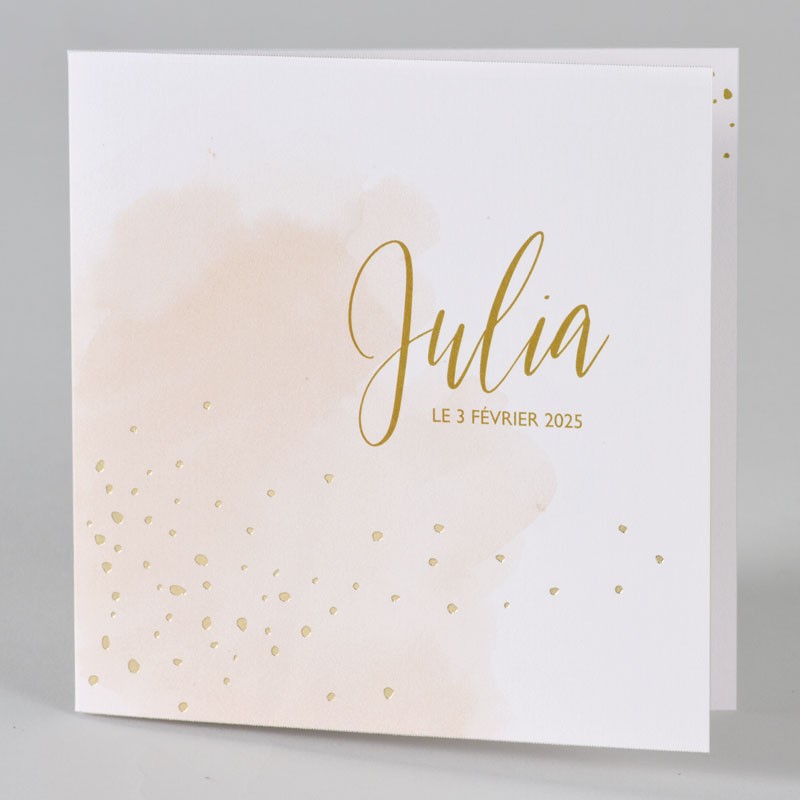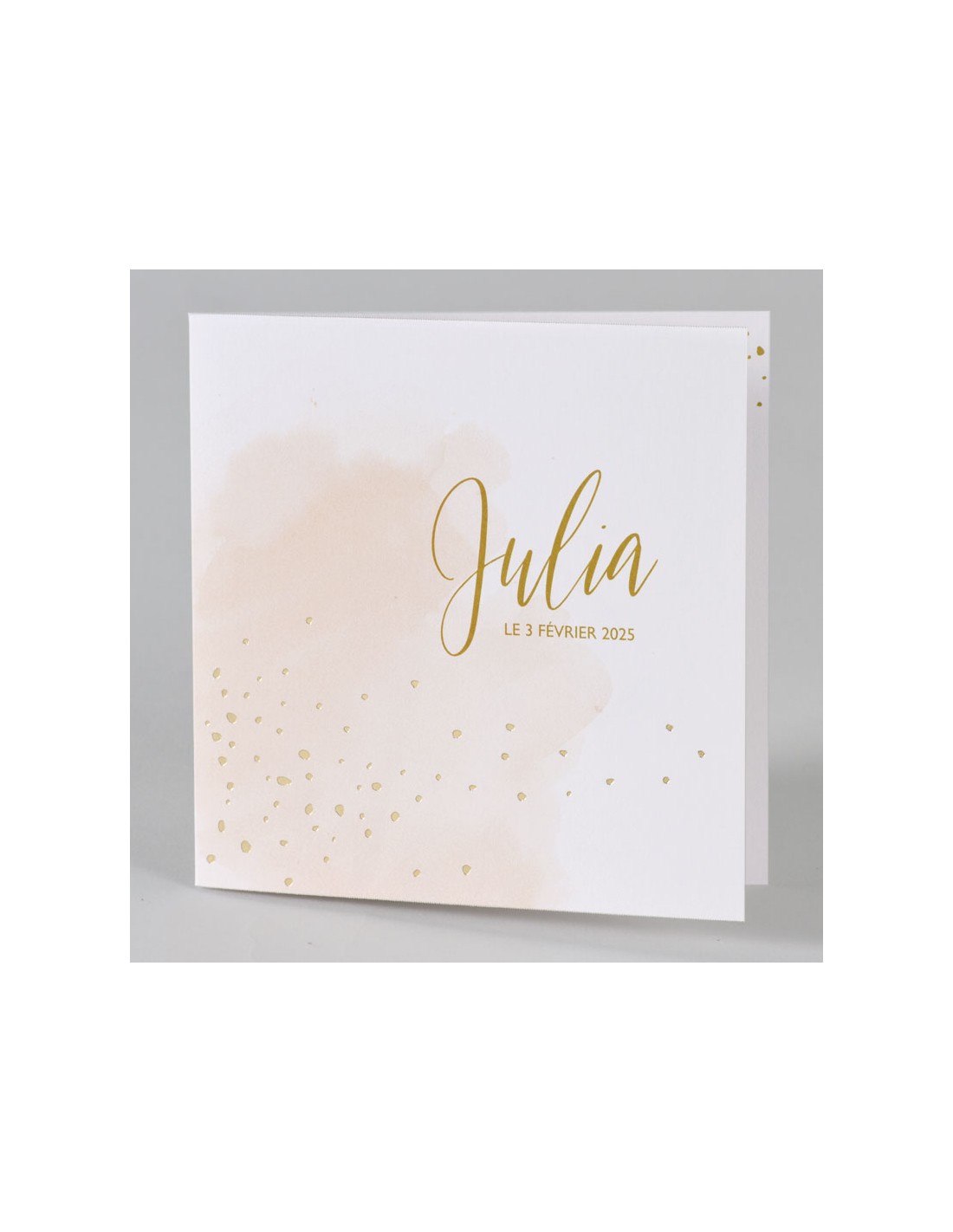 • Pack Faire-part Naissance aquarelle rose avec dorure