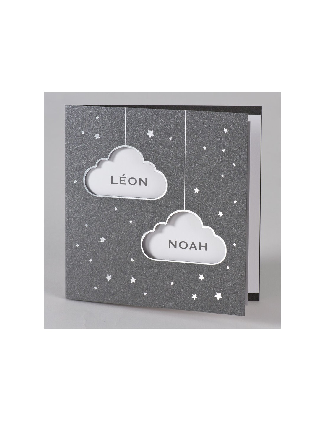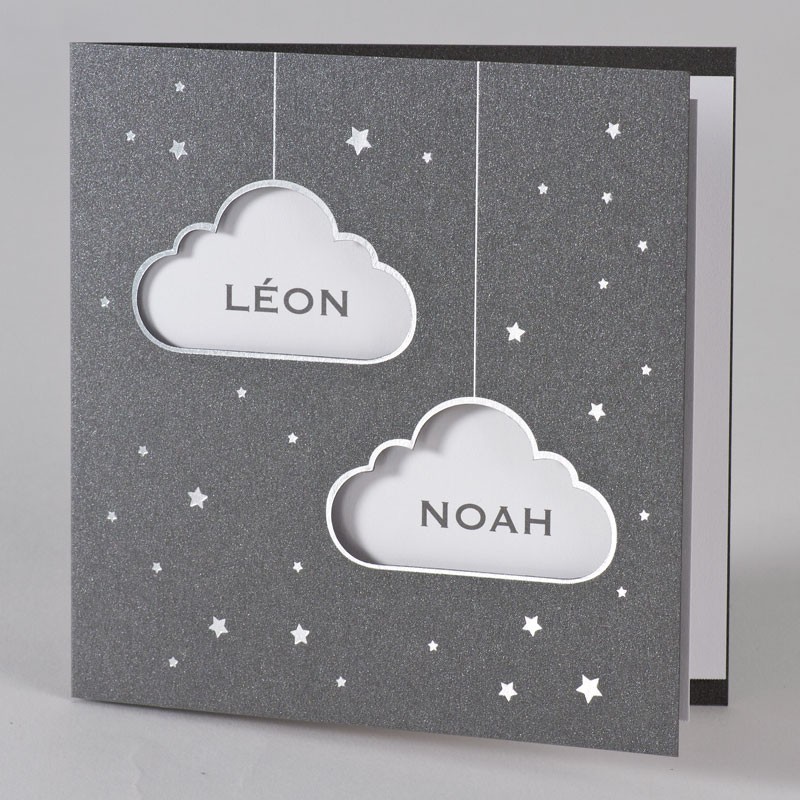 • Pack Faire-Part Naissance jumeaux avec nuages argentés