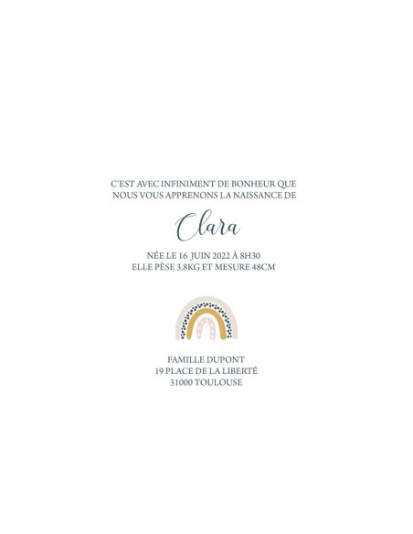 Pack Faire-part Naissance Arc en ciel - Collection Clara