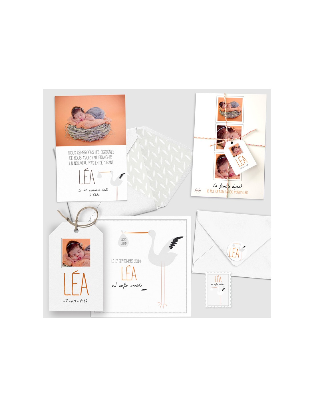 Pack :Faire-part Naissance Cigogne - Collection Léa
