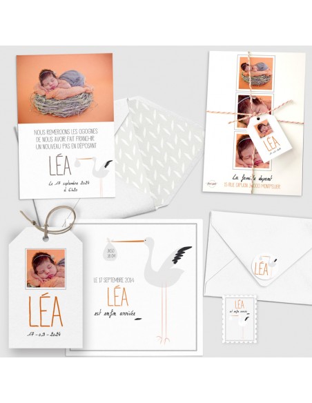 Pack :Faire-part Naissance Cigogne - Collection Léa