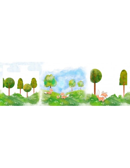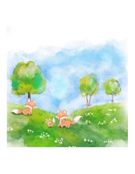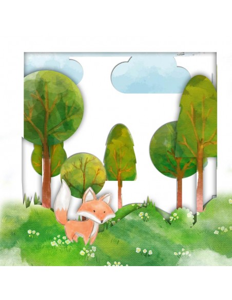 Faire-part de naissance sur le thème de la foret avec une famille de renard avec découpe laser.