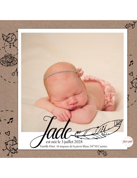 Pack :Faire-Part Naissance Magnet plume - Collection Jade