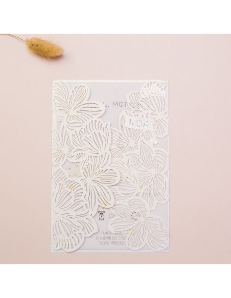 QUANTITÉ  MINIMUM 30 EXEMPLAIRES  : 30 x  - Faire-part Naissance Dentelle Fleur Rétro - POC0020  - Quantité - Choisissez votre quantité