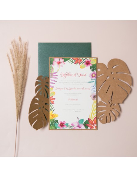 Pack :Faire-part mariage Feuilles de Monstera - POC0027