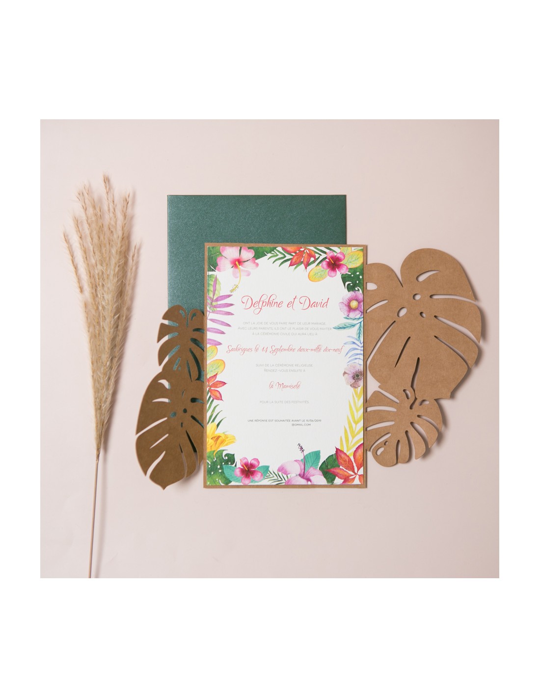 Pack Faire-part mariage Feuilles de Monstera - POC0027