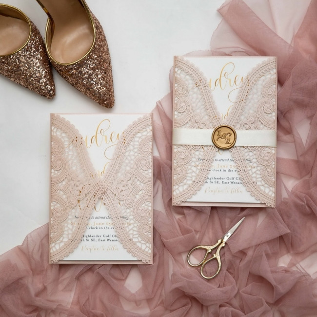 Faire-part mariage dentelle vintage, un faire-part élégant et délicat pour votre mariage avec carton en création sur-mesure