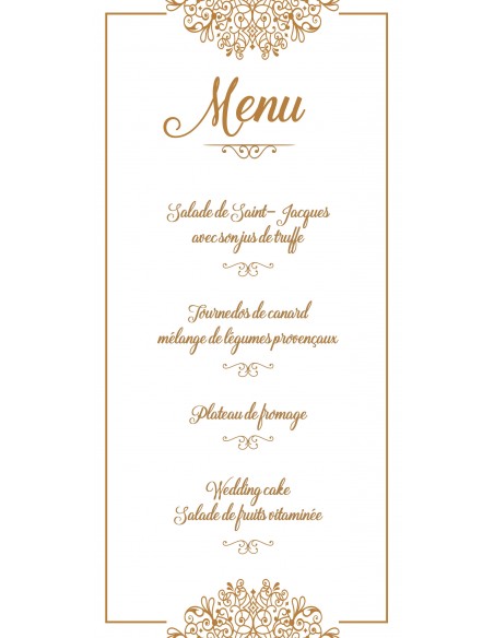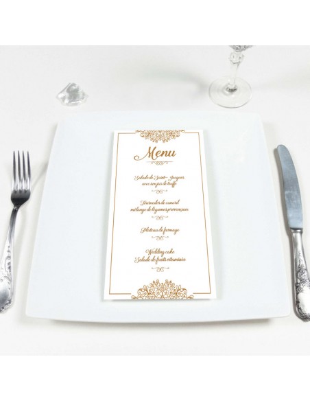 QUANTITÉ MINIMUM 10 EXEMPLAIRES : 10 x - Menu Mariage Arabesques Or - Quantité - Choisissez votre quantité