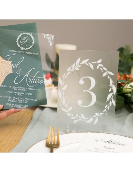 Personnalisation :Numéro ou nom de table mariage en plexi couronne végétale
