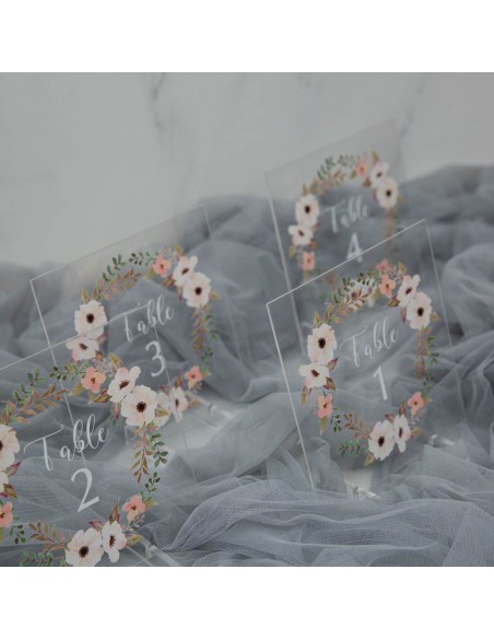 Numéro ou nom de table en plexi Couronne de fleurs