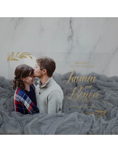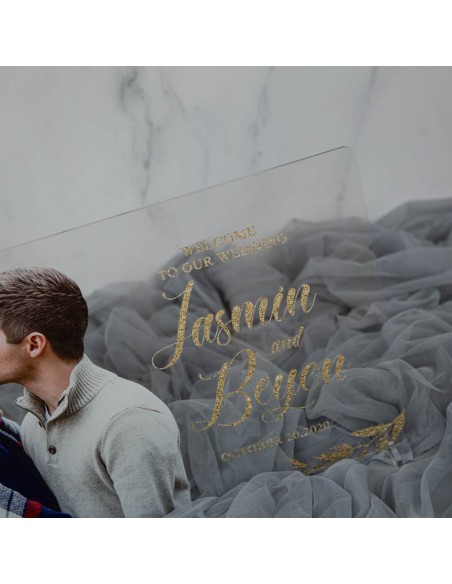 Tableau de bienvenue en plexiglas transparent avec une personnalisation du visuel selon vos textes et couleurs