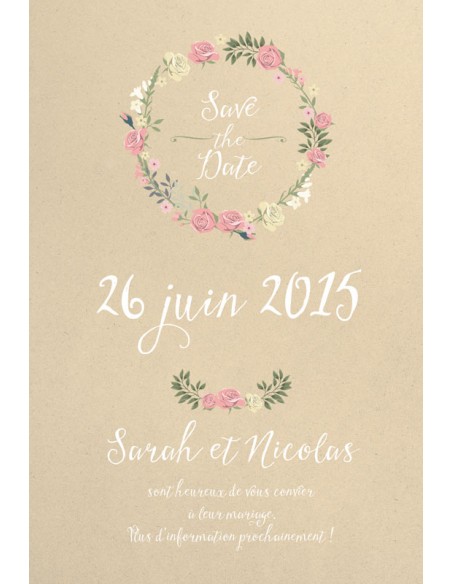 Save the date Mariage couronne de fleurs - Collection Sarah