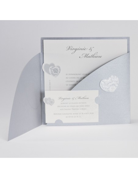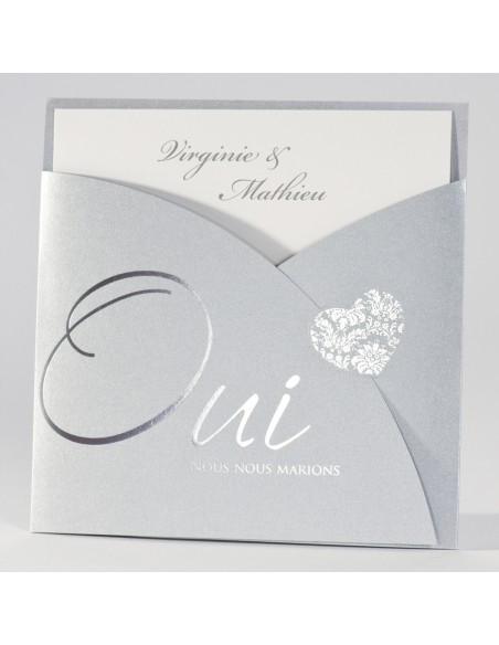 QUANTITÉ MINIMUM 30 EXEMPLAIRES : 40 x - Faire-part carré mariage OUI cœur argenté - Quantité - Choisissez votre quantité