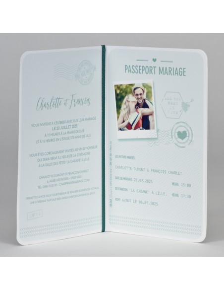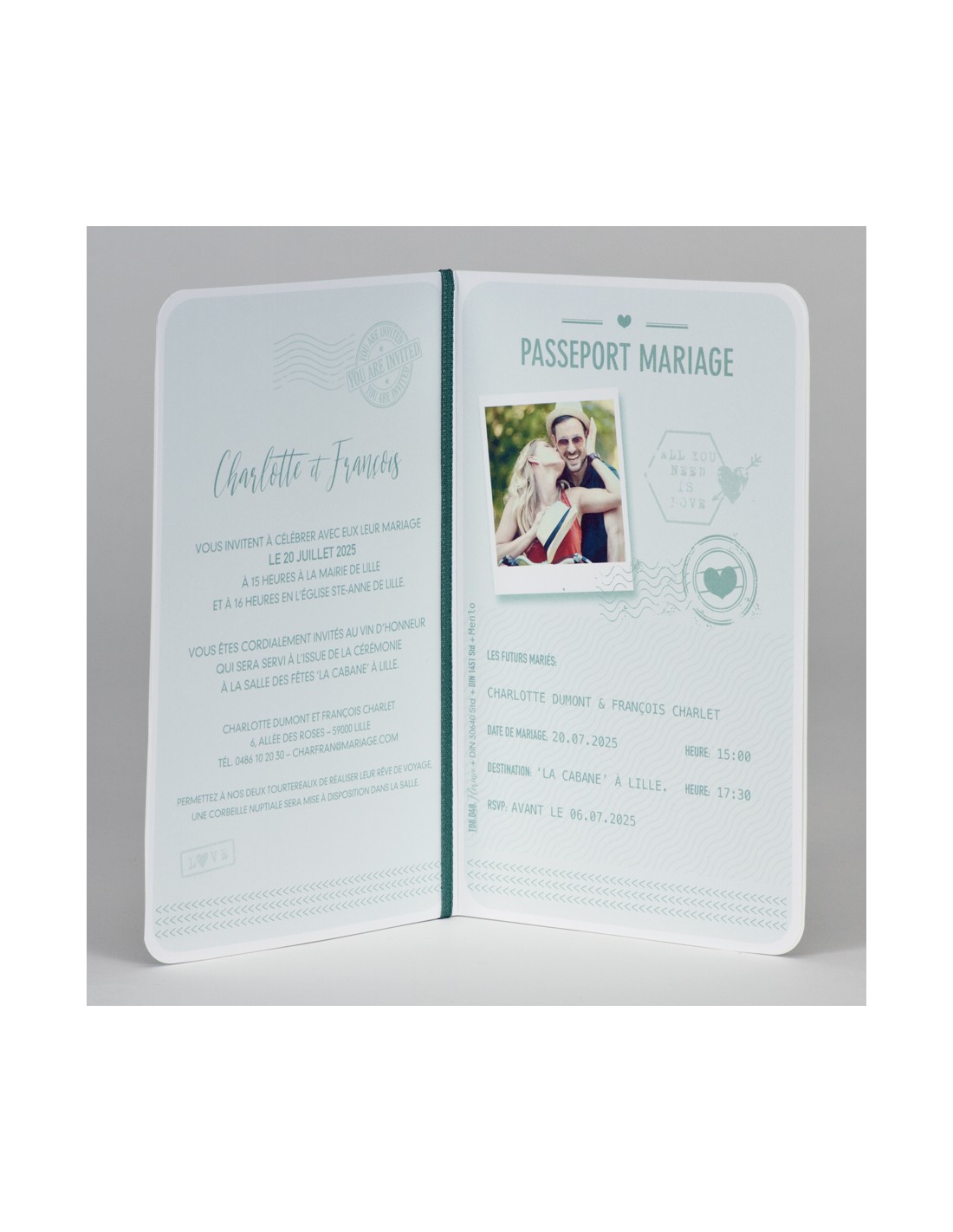 Pack :Faire-part Mariage Passeport Vert Menthe et Doré