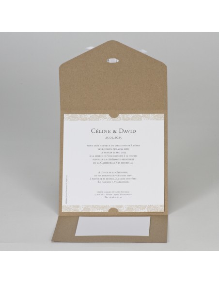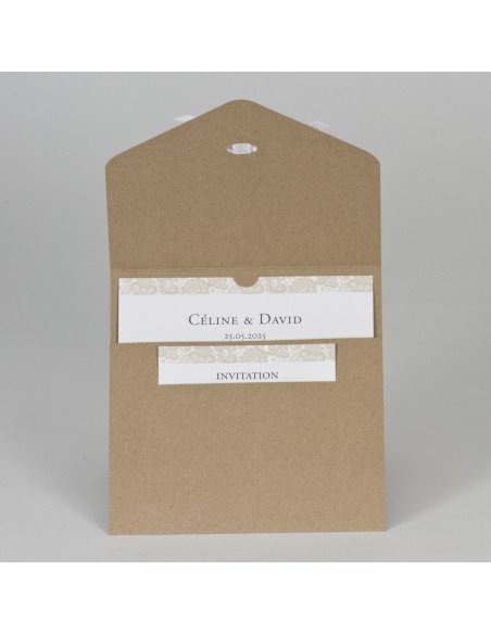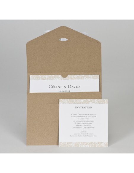 Pack Faire-part mariage pochette Kraft motif dentelle