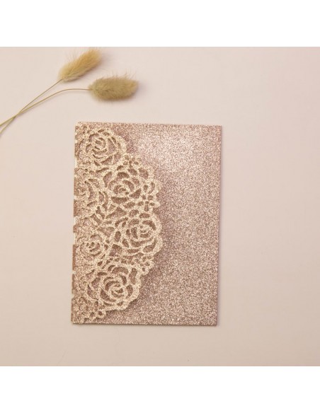 Pack Faire-Part Mariage Pocketfolder Roses Glitter