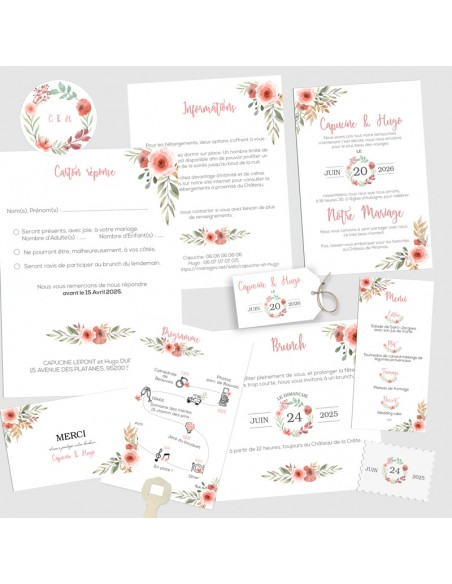 Pack Faire-part Mariage Fleurs des champs - Collection Capucine