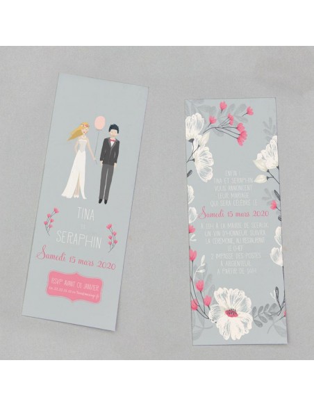 Pack Faire-part Mariage Marque Page Illustration mariés - Collection Tina