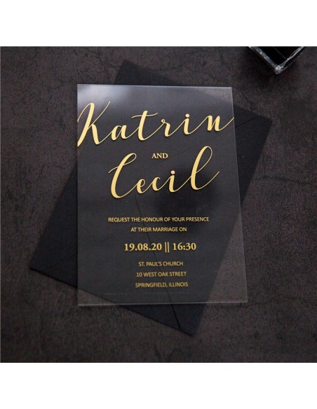 Pack Faire-part Mariage Plexiglas Sérigraphie OR - Modèle 9
