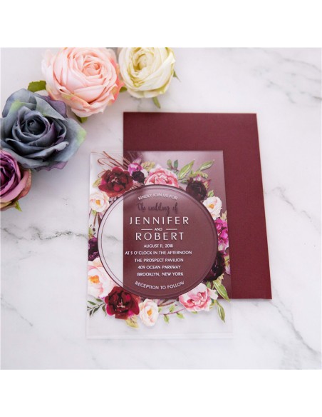 Pack :Faire-Part Mariage Plexiglas roses florales - Collection Rosie