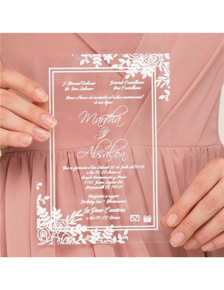 Pack :Faire-Part Mariage en plexiglas Design champêtre blanc - Modèle 4