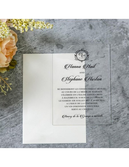 Pack :Faire-Part Mariage Acrylique avec Blason - Modèle 38