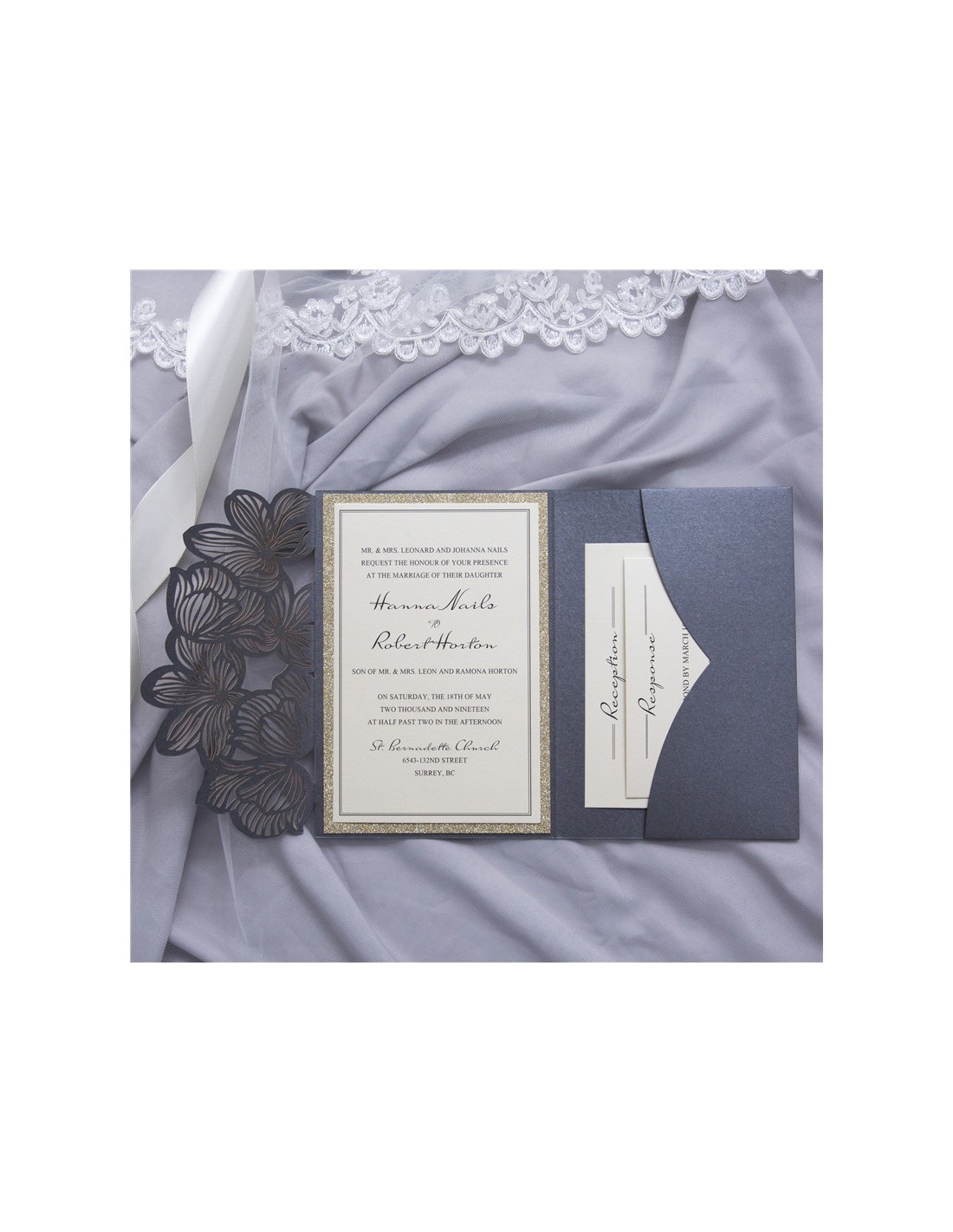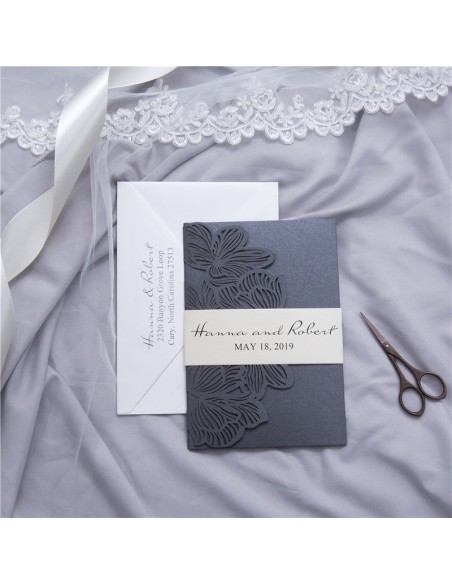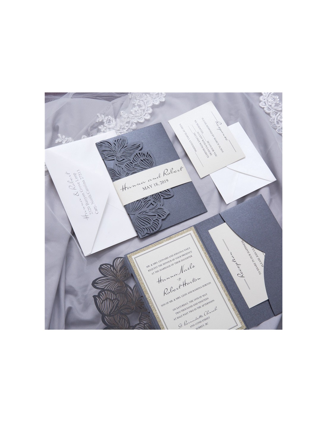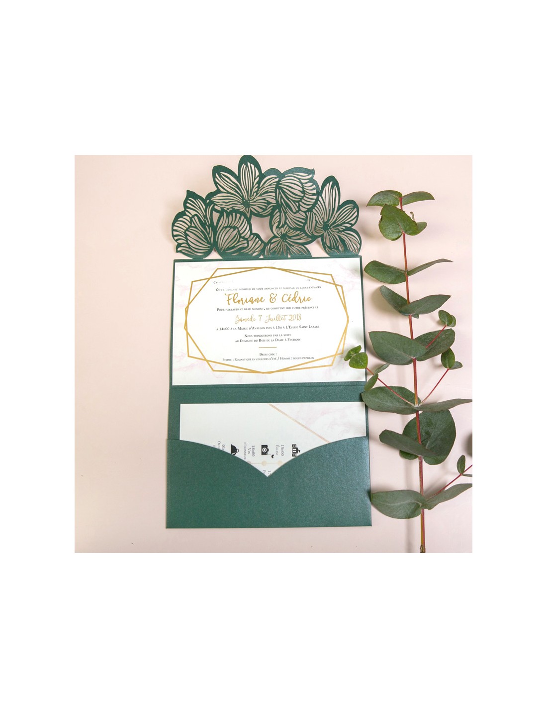 Pack Faire-part Mariage Pochette avec rabat Découpe Fleur - WPFC2120