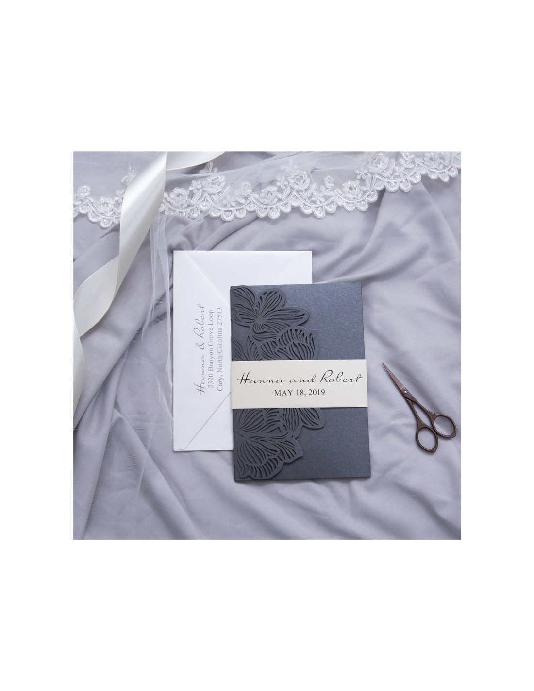 QUANTITÉ MINIMUM 30 EXEMPLAIRES : 30 x - Faire-part Mariage Pochette avec rabat Découpe Fleur - WPFC2120 - Quantité - Choisissez votre quantité