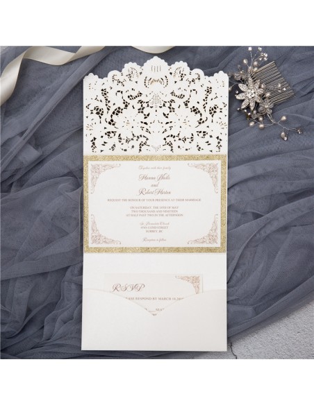 Pack Faire-part Mariage Pocket folder ciselée Chic - WPFC2121