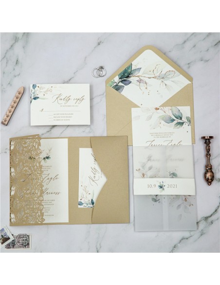 Pack Faire-part Mariage Pocketfolder Dentelle Chic - WPFC2138