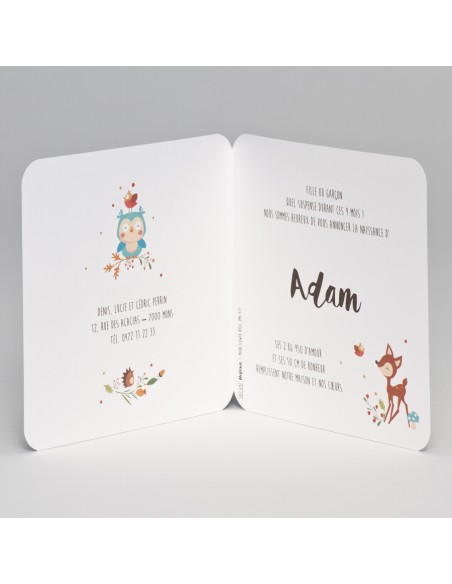Pack :Faire-part Naissance mixte animaux de la forêt