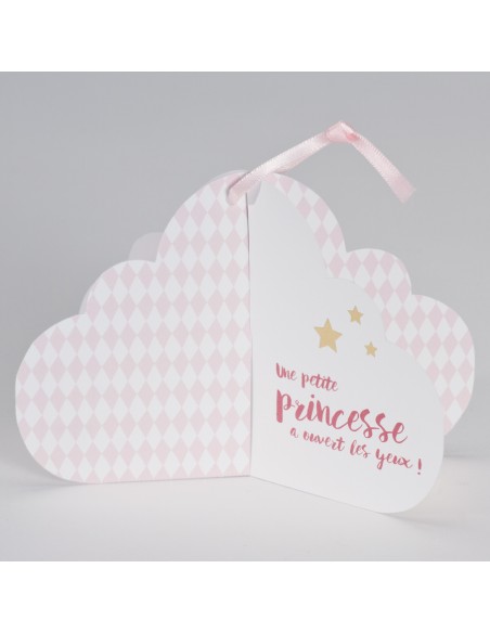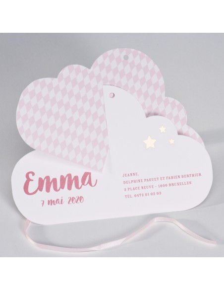 Pack :Faire-Part Naissance nuage rose et étoiles en dorures
