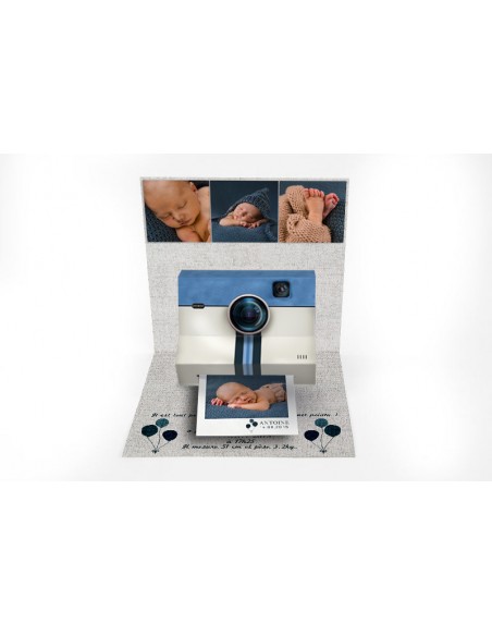 Pack Faire-part Naissance Pop Up Polaroid Ballon - Collection Antoine