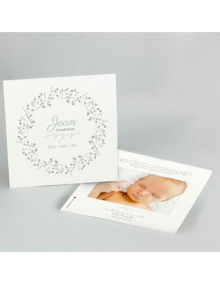 Pack Faire-part Naissance couronne de fleurs - Collection Jean