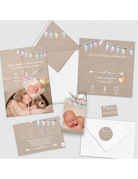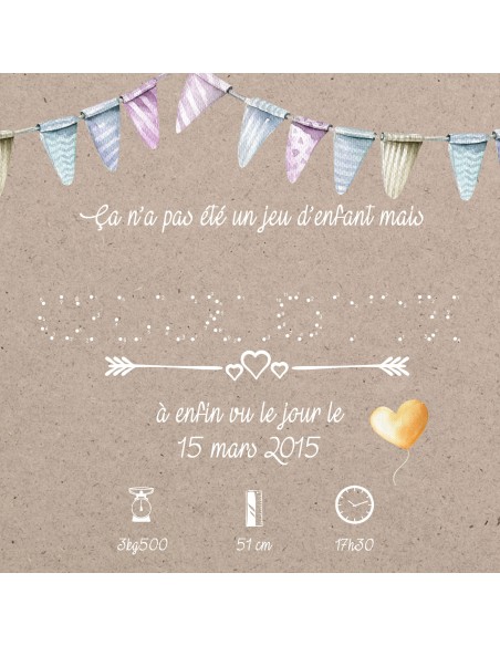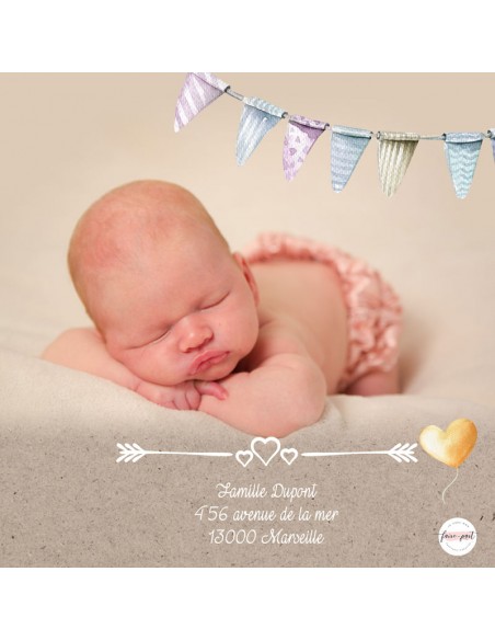 Un carton d'annonce de la naissance de enfant à personnalisable dans les couleurs de votre choix, vos textes et vos photos.